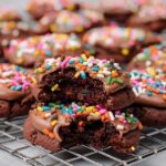 Italian Chocolate Meatball Cookies are rich, soft chocolate cookies with a unique blend of warm spices and a luscious chocolate glaze topped with sprinkles. These cookies feature a tender texture with mini chocolate chips and chopped walnuts for added crunch and depth, offering a delightful twist on classic chocolate treats.