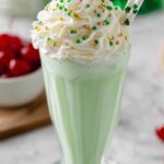 - Serve and garnish: Top each shake with whipped cream and sprinkle green sugar or sprinkles on top. Add a maraschino cherry as a finishing touch if desired. Serve immediately to enjoy the freshest flavor and creamy texture.
