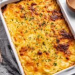 This classic Au Gratin Potatoes recipe features thinly sliced Yukon Gold potatoes baked in a rich, creamy cheese sauce made with cheddar, gruyere, and Parmesan. Layered with onions and garlic, this decadent side dish is perfect for holiday dinners or comforting family meals.