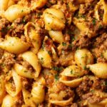 This Easy Creamy Beef and Shells recipe is a quick and comforting one-pan meal featuring tender pasta shells coated in a flavorful, creamy beef tomato sauce with a hint of chili powder for a subtle kick. Perfect for a weeknight dinner that is both budget-friendly and satisfying.