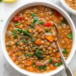 This hearty and flavorful lentil soup is packed with nutritious ingredients including lentils, fresh vegetables, and bold spices. It's a one-pot recipe that's easy to make, perfect for a comforting lunch or dinner, and offers a healthy dose of protein and fiber.