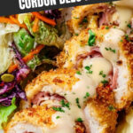 This classic Cordon Bleu Chicken recipe features tender chicken breasts stuffed with Black Forest ham and Swiss Gruyere cheese, breaded with a crispy seasoned panko crust, and baked to perfection. Served with a creamy Dijon sauce, it's a comforting and elegant main dish perfect for dinner.