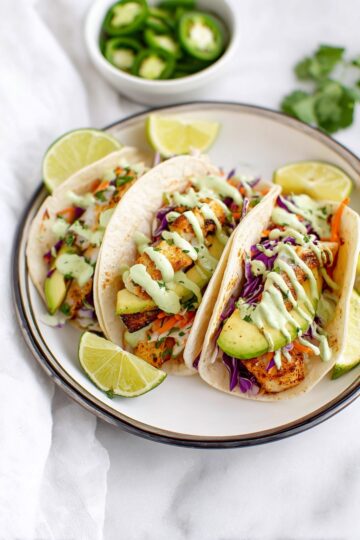 I don’t usually freeze the assembled tacos, but the seasoned raw fish fillets freeze great if you want to prep in advance. Just thaw in the fridge overnight and cook as usual for best results.