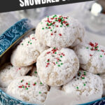 As soon as the cookies come out of the oven and are cool enough to handle (just a minute or so), roll them in powdered sugar. They’ll look like little frosted snowballs. Once completely cooled on a wire rack, feel free to give them another roll—it really helps build that signature sugary coating.