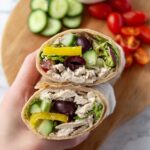 A delicious and refreshing Greek Turkey Wrap with Hummus, combining zesty Greek salad flavors with tender turkey and creamy hummus, perfect for a quick and healthy lunch.