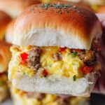 These Hawaiian Roll Breakfast Sliders are a delicious and easy breakfast option featuring layers of creamy cream cheese, savory sausage, fluffy scrambled eggs, and melted cheddar cheese all piled inside sweet Hawaiian rolls and baked to golden perfection with a flavorful butter glaze.