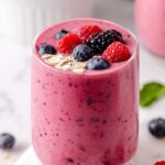 A thick, creamy, and fruity Mixed Berry Smoothie packed with Greek yogurt, oats, and mixed berries. Perfect as a quick breakfast or snack that keeps you full and energized.