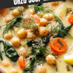 Lemony Greek Chickpea Soup is a vibrant, protein-packed vegetarian soup inspired by Avgolemono Soup, featuring chickpeas, orzo, kale, and fresh dill in a silky, fragrant lemon broth. Ready in just over 30 minutes, this comforting soup combines fresh vegetables and bright citrus flavors for a wholesome, satisfying meal.