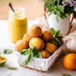 These Italian Lemon Cookies are soft, olive oil-based lemon cookies filled with tangy gooey lemon curd, then dipped in a lemon basil syrup. The herbal basil, zesty lemon, and earthy olive oil flavors create a unique and delightful cookie reminiscent of Italian peach wedding cookies, shaped like lemons. Perfect as a lemon-themed dessert for any celebration.