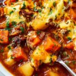 This hearty Hamburger Soup is a flavorful and comforting dish featuring lean ground meat, fresh vegetables, and a rich tomato-based broth with smoky barbecue undertones. Perfect for a quick family meal, it combines tender potatoes, bell pepper, and aromatic spices for a satisfying bowl that can be garnished with cheddar cheese, parsley, green onions or chives, and a dollop of sour cream.