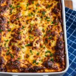 - Add Egg Mixture: Pour the prepared egg mixture over the layers in the baking dish, spreading it gently if needed to cover all the ingredients beneath evenly.