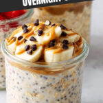 Delicious and creamy Chunky Monkey Overnight Oats made with gluten-free rolled oats, chia seeds, banana, peanut butter, shredded coconut, and chocolate chips. This vegan and gluten-free breakfast is easy to prepare the night before, making your mornings hassle-free and nutritious.