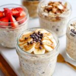 - Combine Ingredients: In a small bowl or jar, mix 1/3 cup rolled oats, 2 teaspoons chia seeds, a pinch of salt, 1-2 teaspoons pure maple syrup, 1/2 cup milk, 2-4 tablespoons diced banana, 1 tablespoon peanut butter, 1/2 tablespoon shredded coconut, and 1 teaspoon mini chocolate chips or cacao nibs. Stir well to combine and taste, then add more syrup or milk if desired.