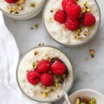 This creamy vegan rice pudding is a comforting and delightful dessert made with Arborio rice, rich coconut milk, and almond milk. Naturally gluten and dairy free, it’s lightly sweetened and infused with cinnamon and vanilla for a warm, indulgent treat that can be enjoyed warm or cold.